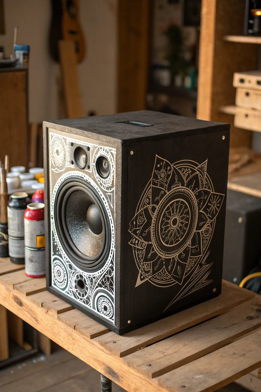 Upgrade your sound with art: Change your bass speaker box using spectacular pattern designs.