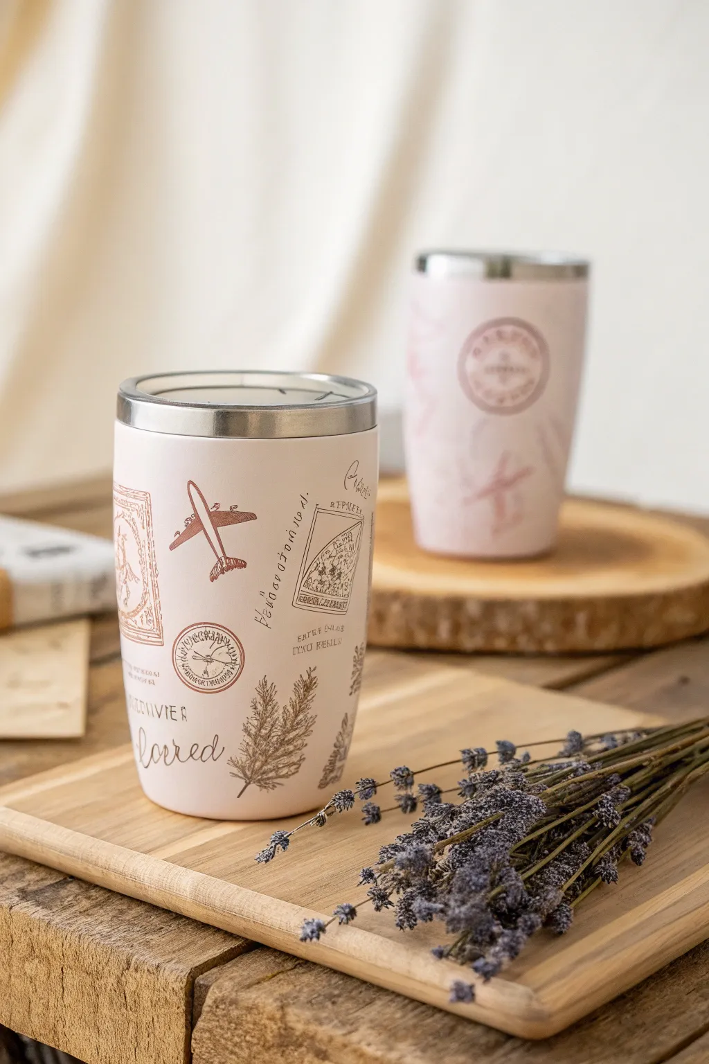 Revisit the past with vintage designs. Consider polka patterns and striped features in muted hues, which infuse your tumbler with a nostalgic yet sophisticated charm.