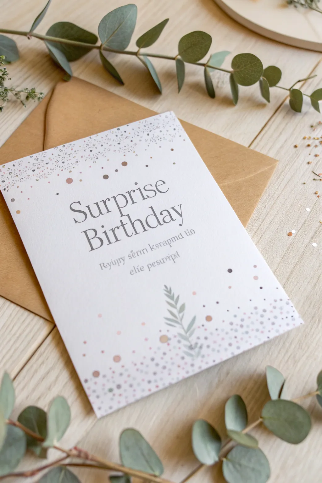 - Elegant Surprise Announcement Cards: Craft enigma with exquisitely designed announcement cards, ideal for your surprise celebration.