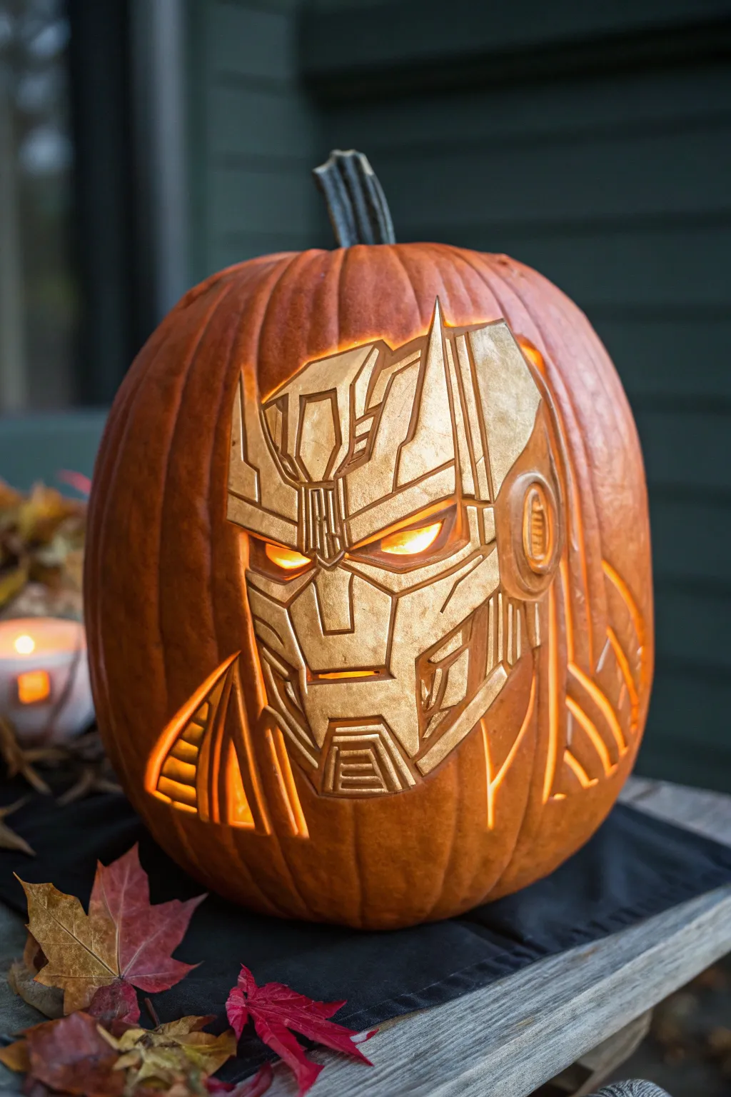 Fashion an automaton visage with angular incisions for a futuristic atmosphere. This one was an unforeseen hit with youngsters in my vicinity – they adored it!
