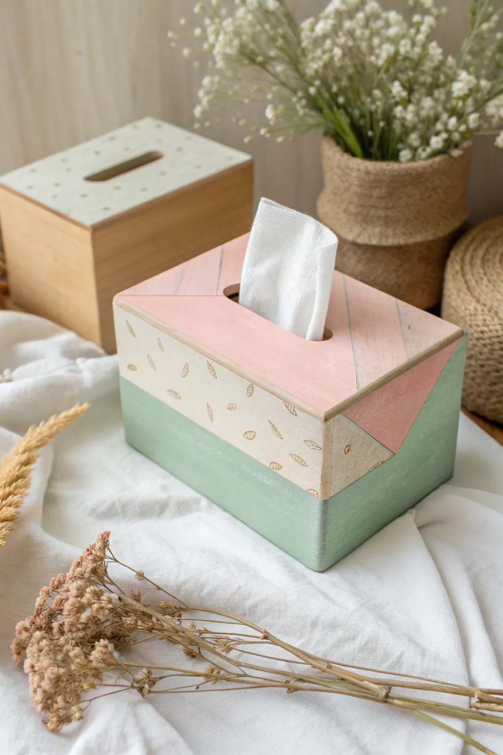 - Eco-Conscious Linen Textile: Opt for eco-conscious linen textile for a sustainable and stylish tissue box enclosure. Make an assertion!