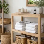 - Interlocking Timber Ceiling Boards: Revitalize your ceiling with these boards, introducing warmth and texture to your bathroom space.