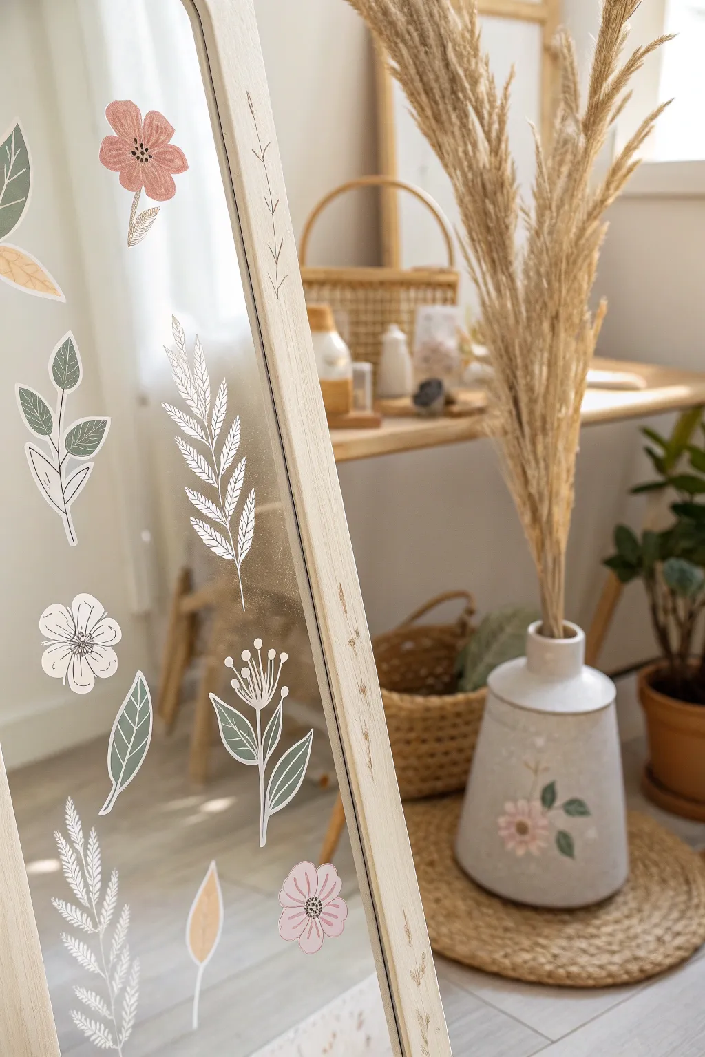 Elevate your mirrors or windows with stickers that add a decorative accent without obstructing the view. I love using translucent stickers for a dreamy effect.