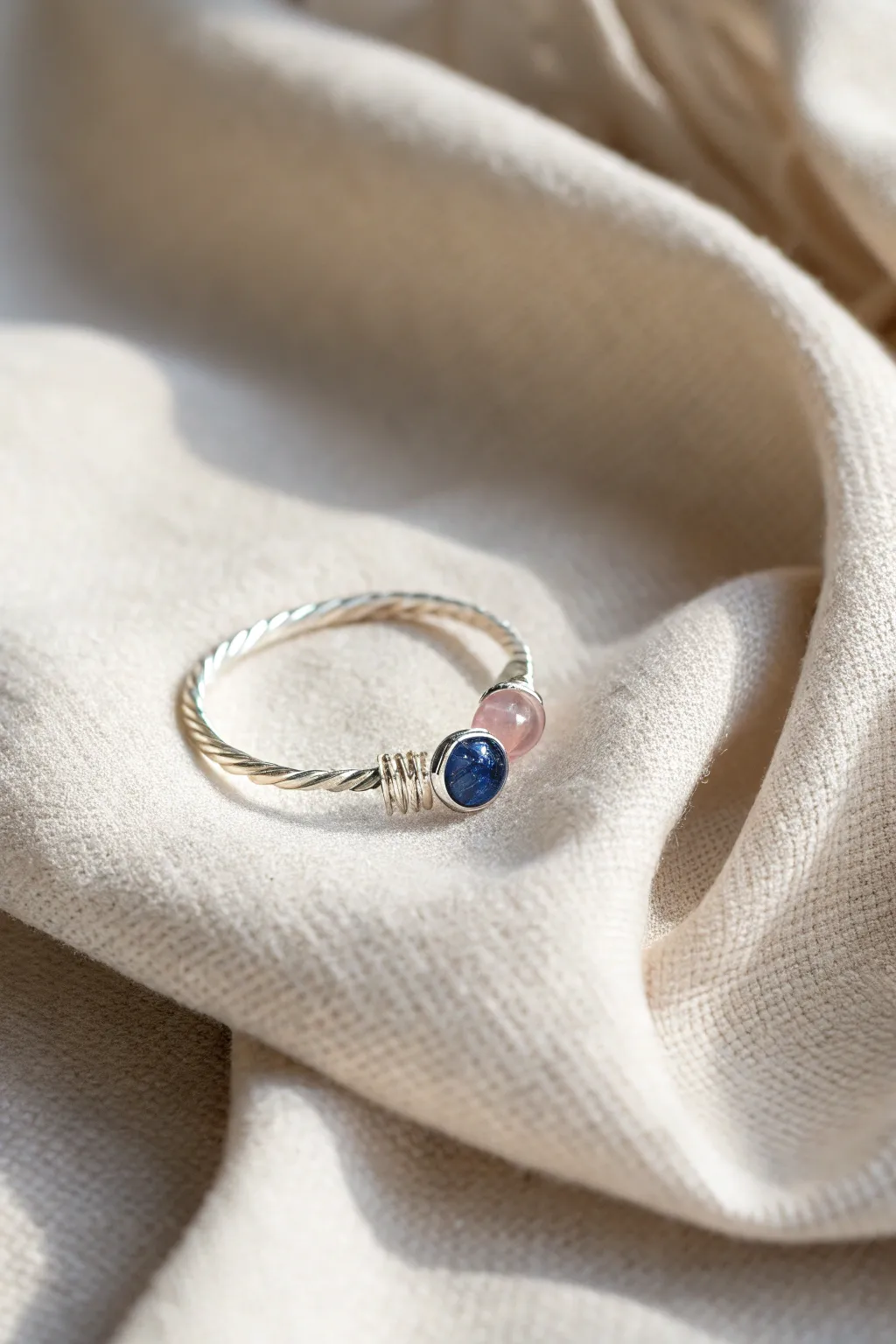 Fashion a refined and stylish braid by weaving together two differently colored strings. This design is undemanding and lends your ring a refined appearance.