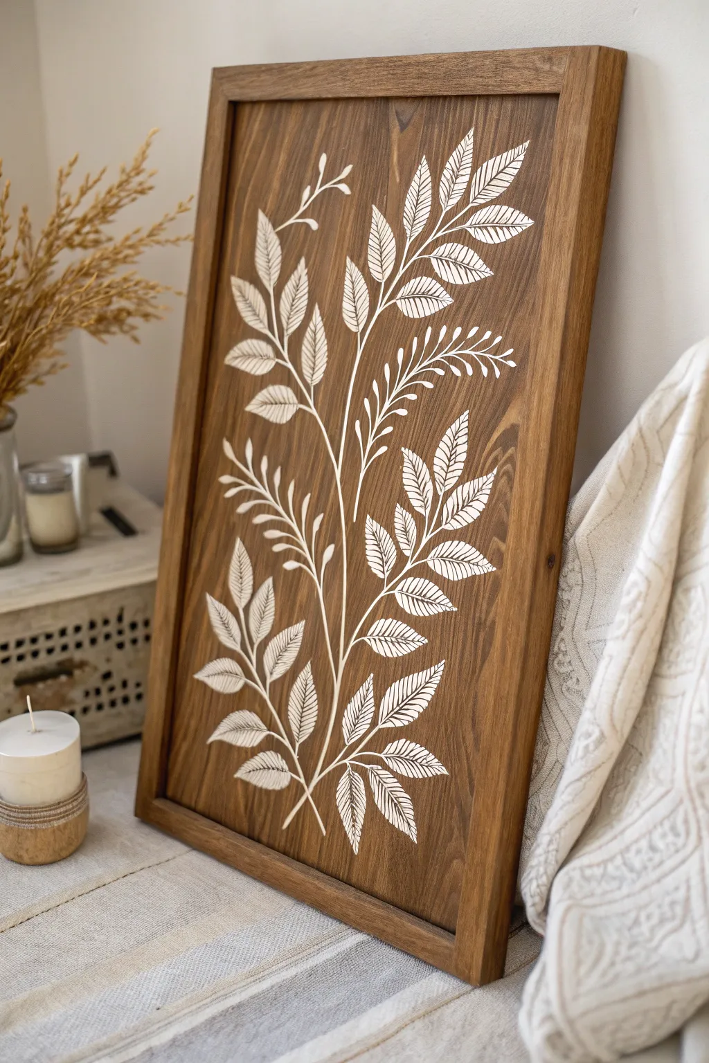 Infuse your living space with the tranquility of the outdoors by utilizing stencils that echo nature, such as designs of trees and foliage, on timber panels. I recall using a leaf-themed stencil on a salvaged piece of wood, which then became the core attraction in my lounge.